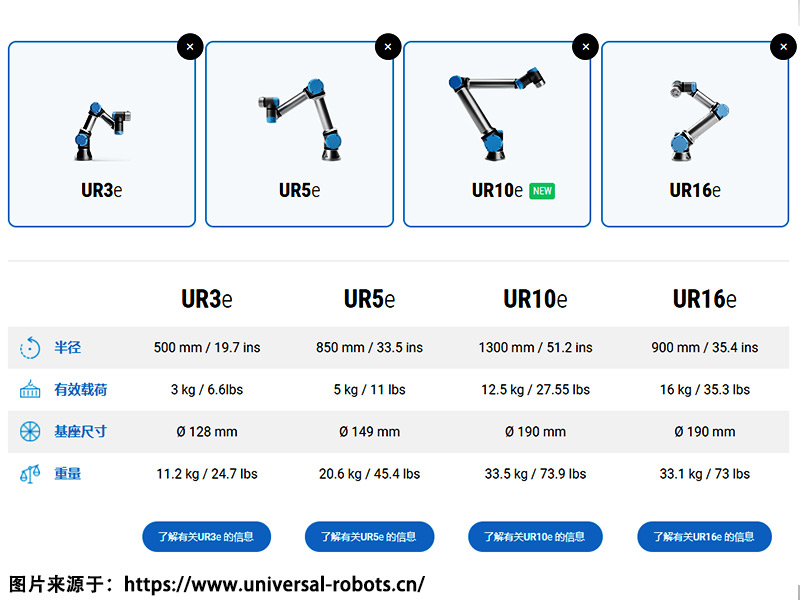 圖片來源于優(yōu)傲機器人官網機器人手臂截圖