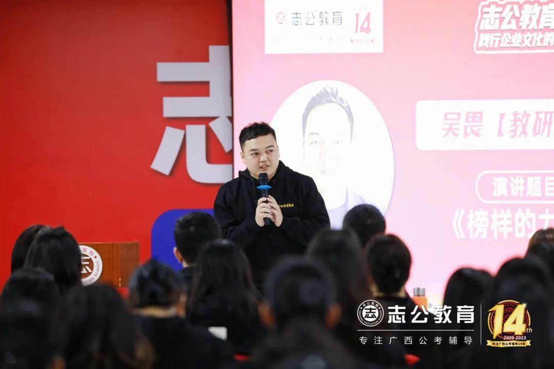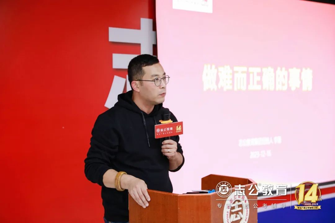 16日上午9點許,董事長李勇發(fā)表致辭,他認為:“聚焦是一種力量”,對于志公教育而言,聚焦就是專注廣西公考輔導。
