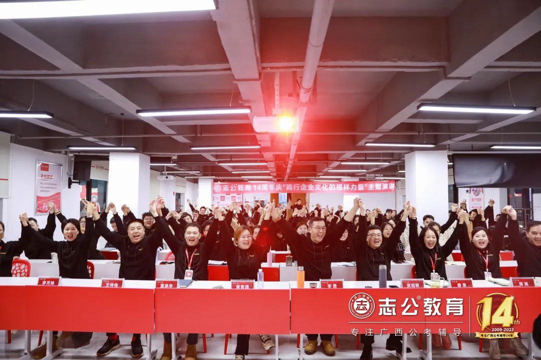 一直以來,志公教育都秉承著“12條企業(yè)文化核心價值觀”,包括客戶原則——以學員為中心”、“管理原則——人人都是經(jīng)營者”等12項原則,扎根廣西本土公考,全力服務每一位志公學員。在董事長李勇的正確領導下,在廣大學員的支持下,在全體員工的共同努力下,志公教育從無到有,從小到大,不斷夯實發(fā)展基礎,贏得了客戶的信賴和品牌形象。全體志公人將堅定目標齊奮斗、凝心聚力再出發(fā),為志公高質量發(fā)展再立新功。