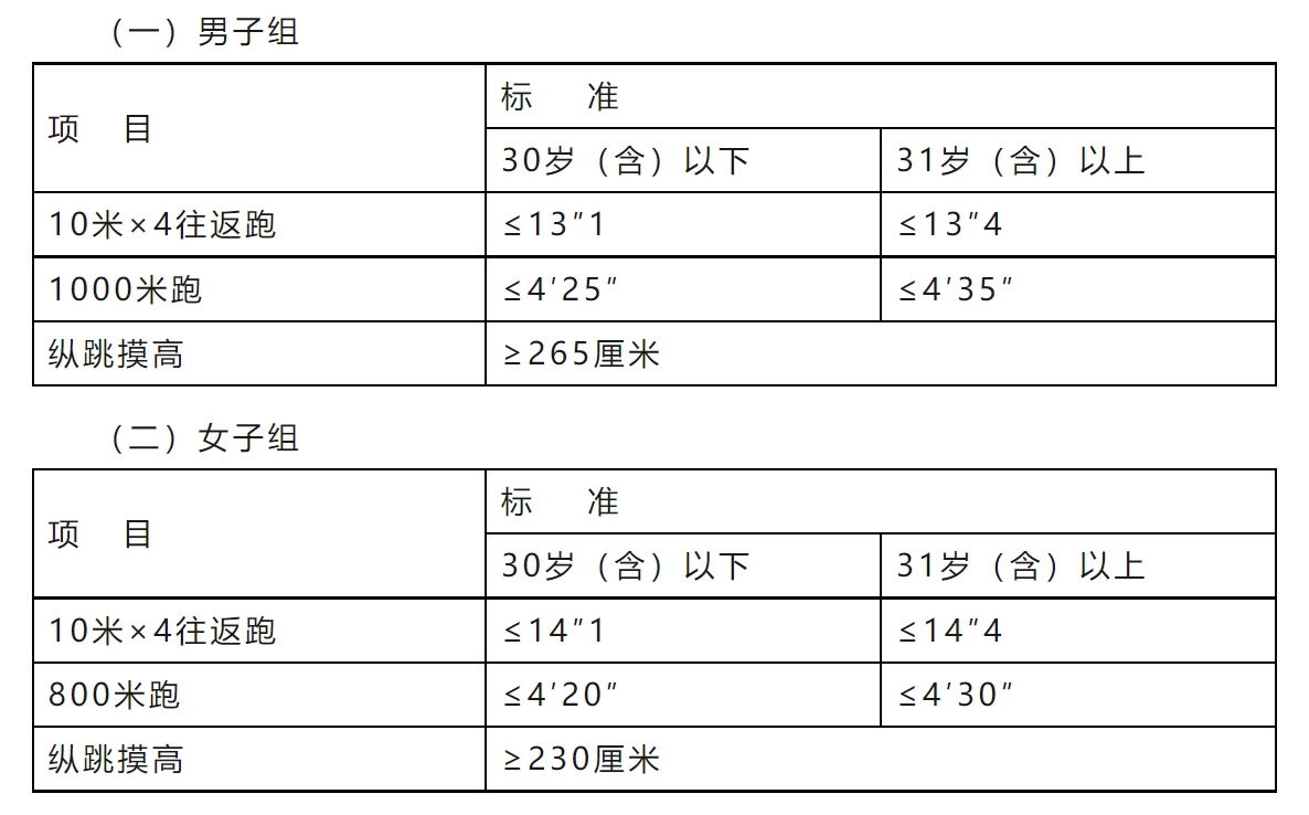 (三)測評標(biāo)準(zhǔn)中涉及的年齡計算時間截止到體能測評當(dāng)月。
