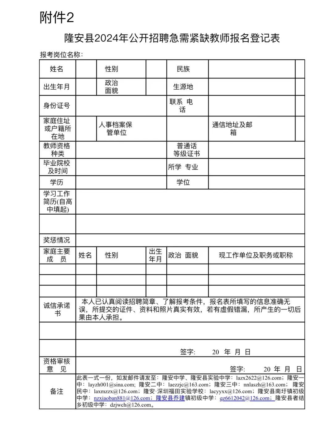 (1)“隆安縣2024年公開招聘急需緊缺教師報名登記表”電子版??傻卿洀V西南寧市人力資源和社會保障局網(wǎng)站、廣西南寧市隆安縣人民政府門戶網(wǎng)站、隆安縣民族中學(xué)微信公眾號下載。