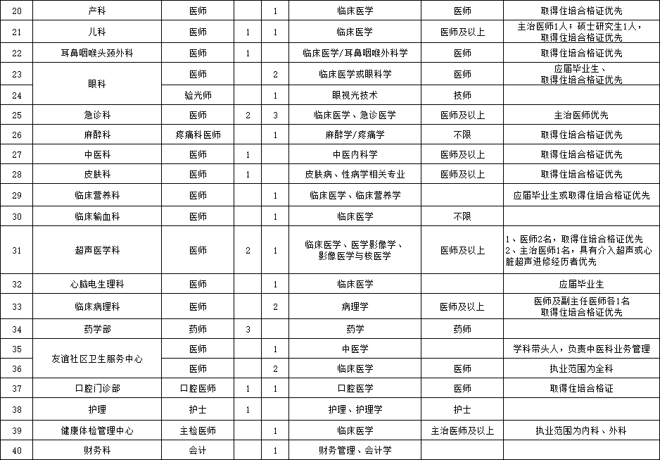 (二)臨床、醫(yī)技、護理等崗位人才(緊缺急需專業(yè):重癥醫(yī)學科、全科醫(yī)學科、康復醫(yī)學科、感染性疾病科、急診科、兒科、麻醉科、眼科、皮膚科、病理科、心腦電生理科等科室醫(yī)師)