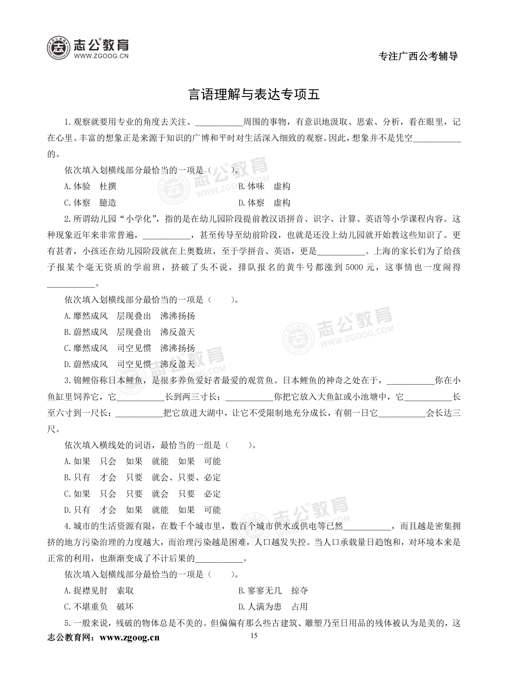 【公考模塊練習(xí)】言語理解題五(試題)