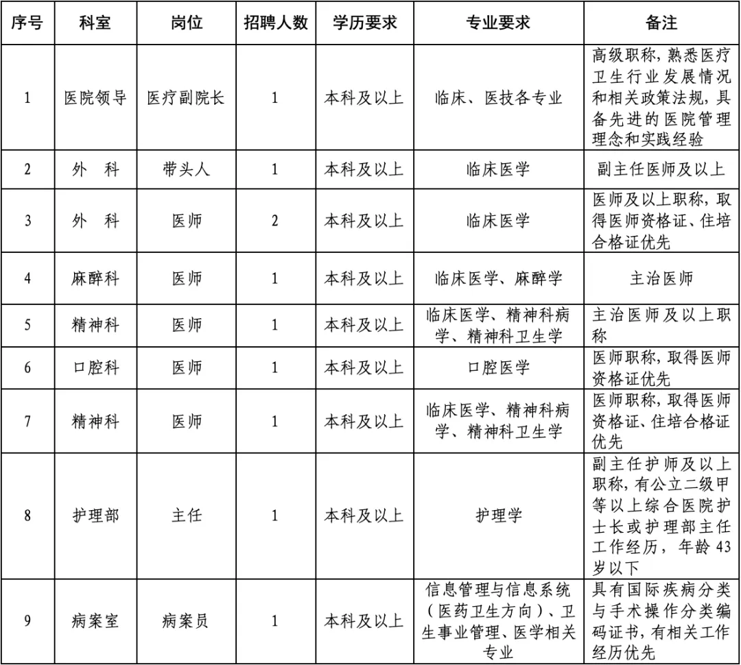 4.學(xué)科帶頭人。達(dá)到醫(yī)院專項(xiàng)人才引進(jìn)標(biāo)準(zhǔn)條件的,按照“一人一策”辦理專項(xiàng)人才引進(jìn)招錄,可單獨(dú)投遞簡(jiǎn)歷并電話咨詢。