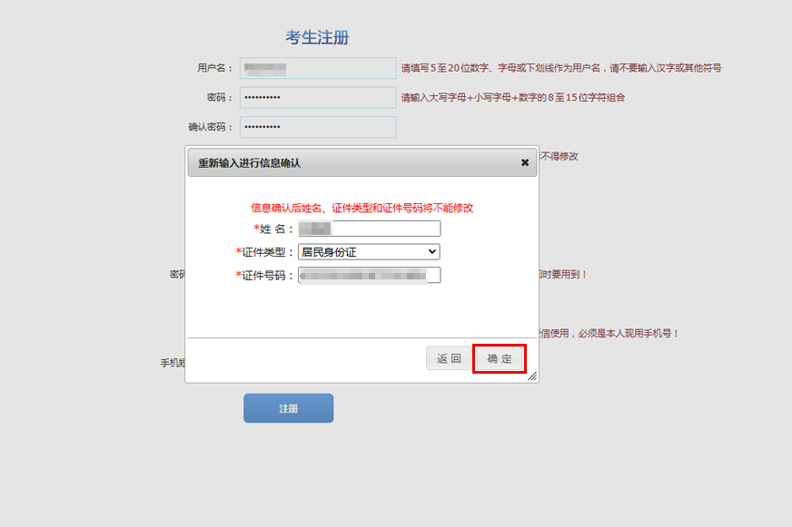 第三步:填寫(xiě)完個(gè)人信息后,點(diǎn)擊注冊(cè)-確定,完成注冊(cè)