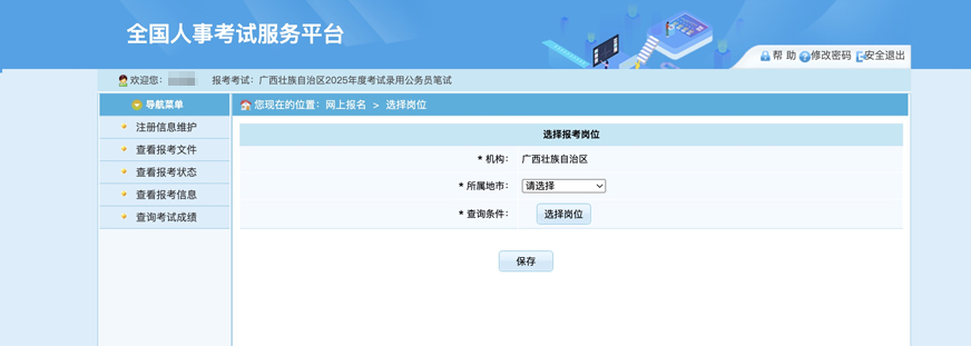 第八步:考生報(bào)名選擇報(bào)考地市及崗位