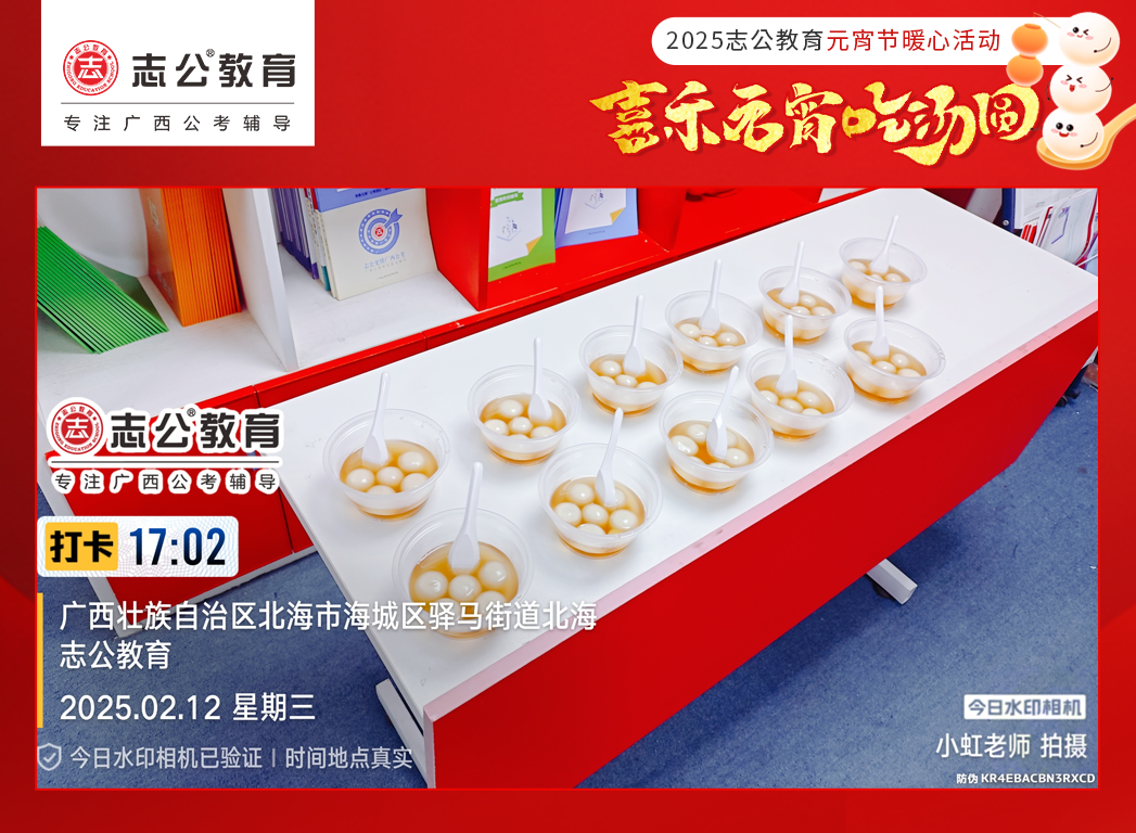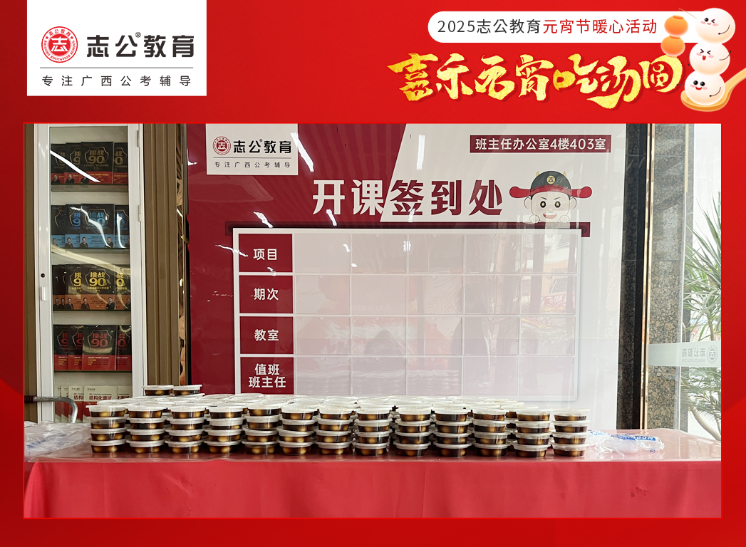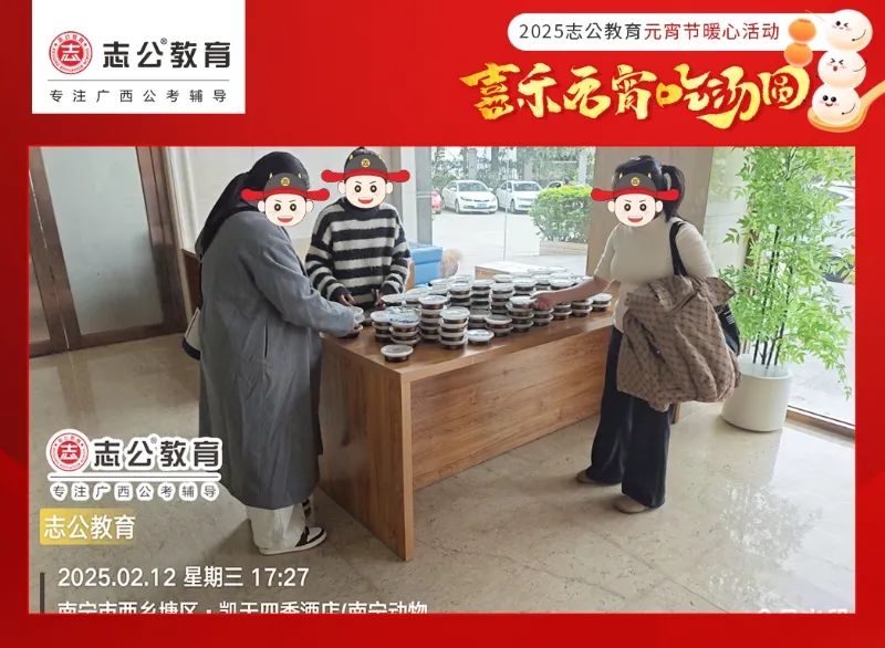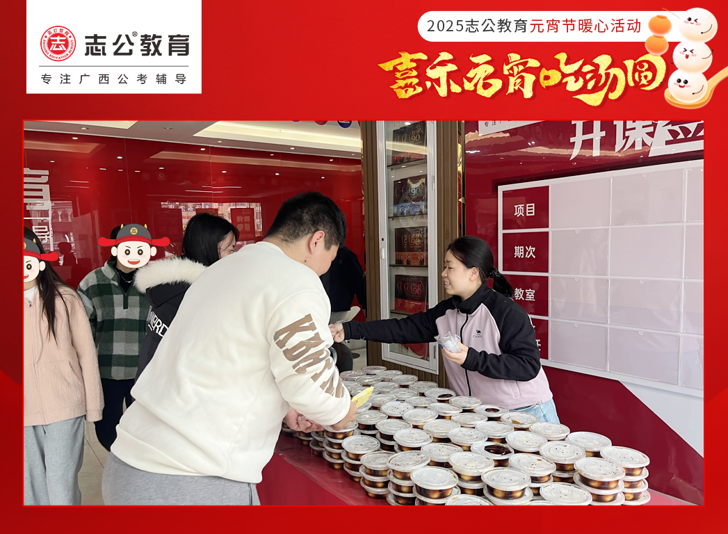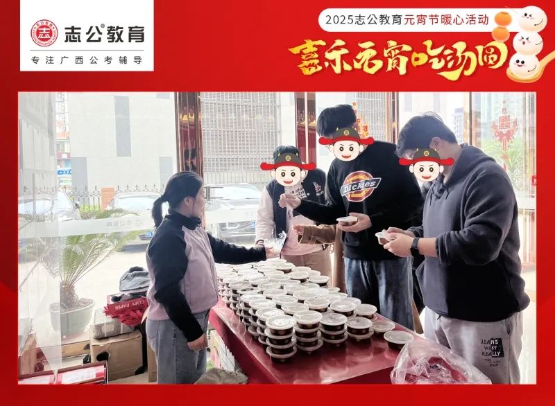 在緊張忙碌的公考備考之路上,每一位學(xué)員都在為了心中的夢(mèng)想全力以赴 。堆積如山的備考資料,一場(chǎng)接一場(chǎng)的模擬考試,長(zhǎng)時(shí)間的學(xué)習(xí)讓他們承受著巨大的壓力 。而這份在元宵節(jié)送上的湯圓,就像冬日里的暖陽(yáng),夏日里的清風(fēng),為他們帶來(lái)了片刻的慰藉 。