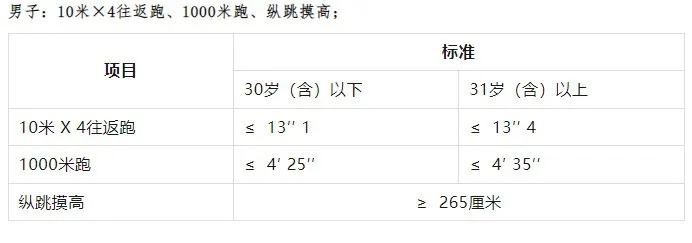 2.體能測(cè)評(píng)項(xiàng)目和標(biāo)準(zhǔn)按照《公安機(jī)關(guān)錄用人民警察體能測(cè)評(píng)項(xiàng)目和標(biāo)準(zhǔn)(暫行)》執(zhí)行。體能測(cè)評(píng)標(biāo)準(zhǔn)報(bào)考人員須參加全部三項(xiàng)體能測(cè)評(píng),全部達(dá)標(biāo)方為合格,如放棄一項(xiàng)則視為不合格,體能測(cè)評(píng)合格的方可進(jìn)入下一環(huán)節(jié)。