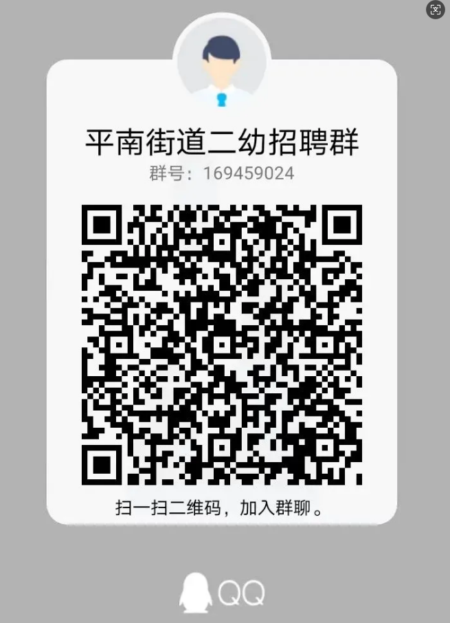 有意向者可以掃碼進(jìn)入平南街道二幼招聘群咨詢,入群請備注姓名。