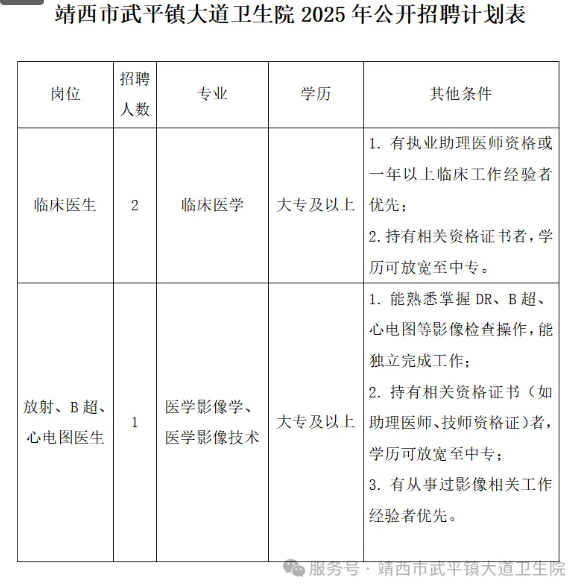 原文標(biāo)題:靖西市武平鎮(zhèn)大道衛(wèi)生院2025年公開招聘臨床醫(yī)生、影像專業(yè)技術(shù)人員公告!