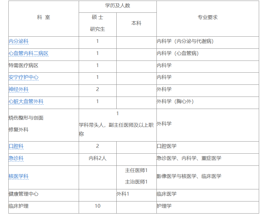 醫(yī)院長(zhǎng)期招聘各臨床專(zhuān)業(yè)博士,人數(shù)不限。