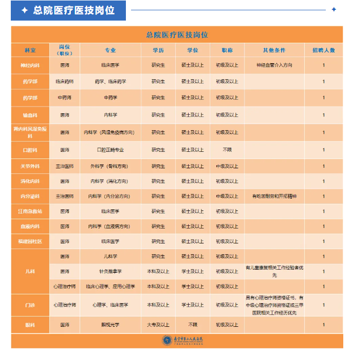 以上崗位均享受醫(yī)院科研獎勵、培訓進修、晉升職務職稱等權利,以及五險一金、用餐補助、帶薪年休假、工會福利等待遇。