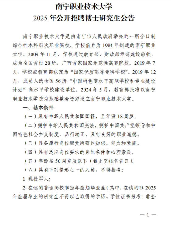 原文標(biāo)題:南寧職業(yè)技術(shù)大學(xué)2025年公開(kāi)招聘博士研究生公告