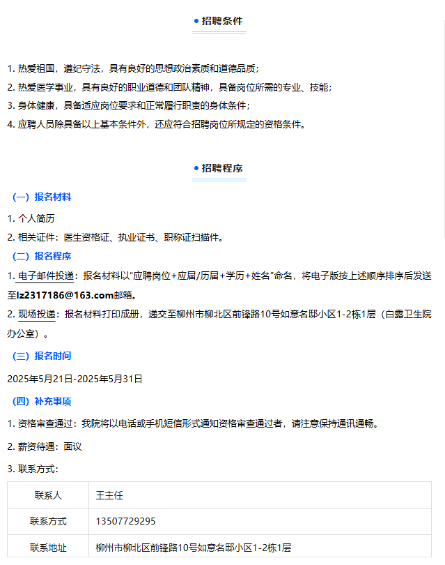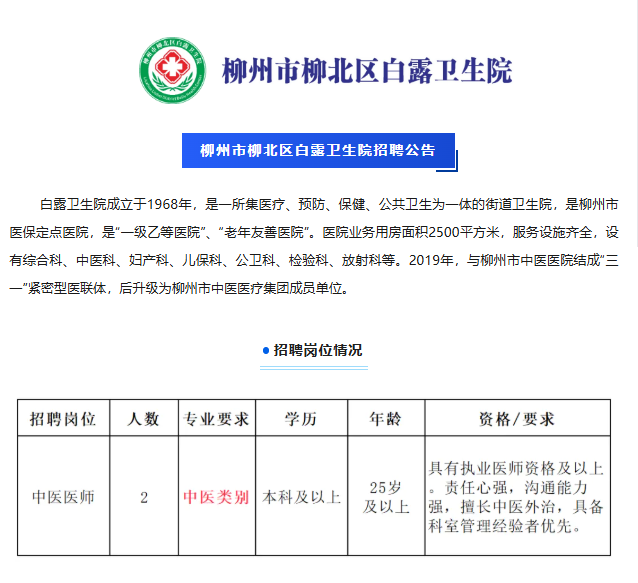 2025年柳州市柳北區(qū)白露衛(wèi)生院編外聘用衛(wèi)生專業(yè)技術人員2人