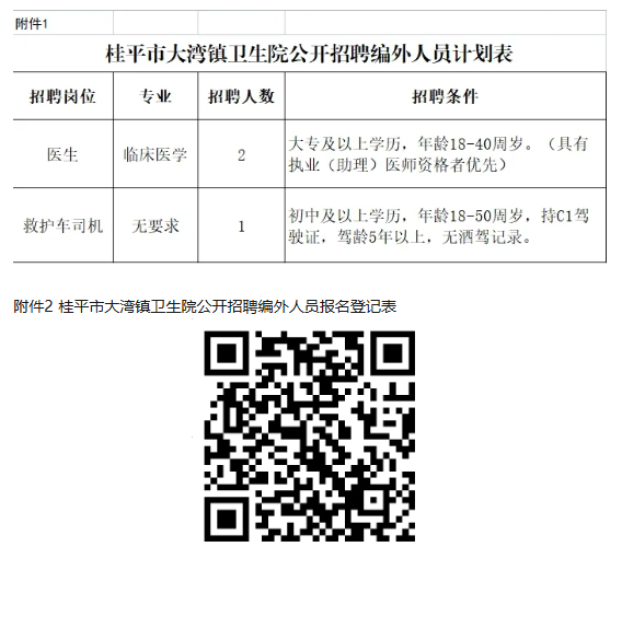 附件:1.桂平市大灣鎮(zhèn)衛(wèi)生院公開招聘編外工作人員計劃表