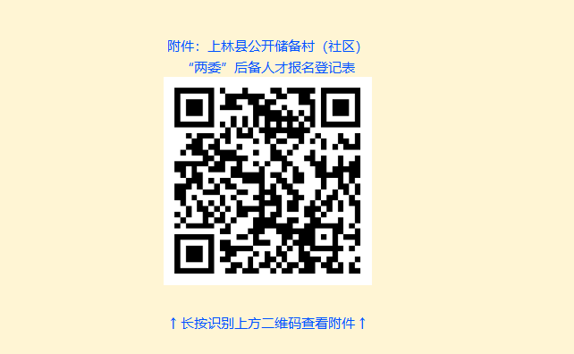 報名方式一:現(xiàn)場報名?,F(xiàn)場報名地點為各鄉(xiāng)鎮(zhèn)黨建辦,現(xiàn)場報名者須填寫《上林縣公開儲備村(社區(qū))“兩委”后備人才報名登記表》(詳見附件,以下簡稱《報名登記表》),并提供本人身份證、學(xué)歷學(xué)位證書、戶口簿原件及復(fù)印件(原件供現(xiàn)場審核;復(fù)印件以供存檔,不退回)各1份,近期小二寸正面免冠照片2張。