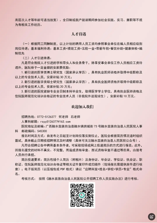 2025年廣西柳州融水苗族自治縣人民醫(yī)院招聘若干人