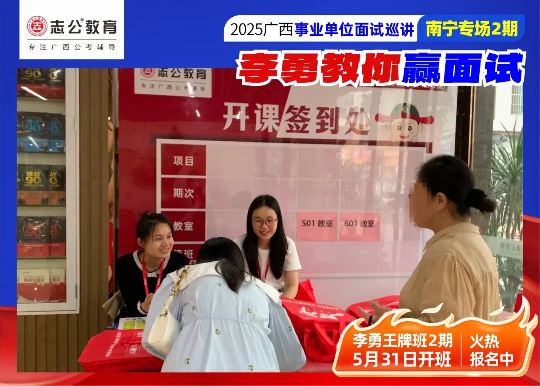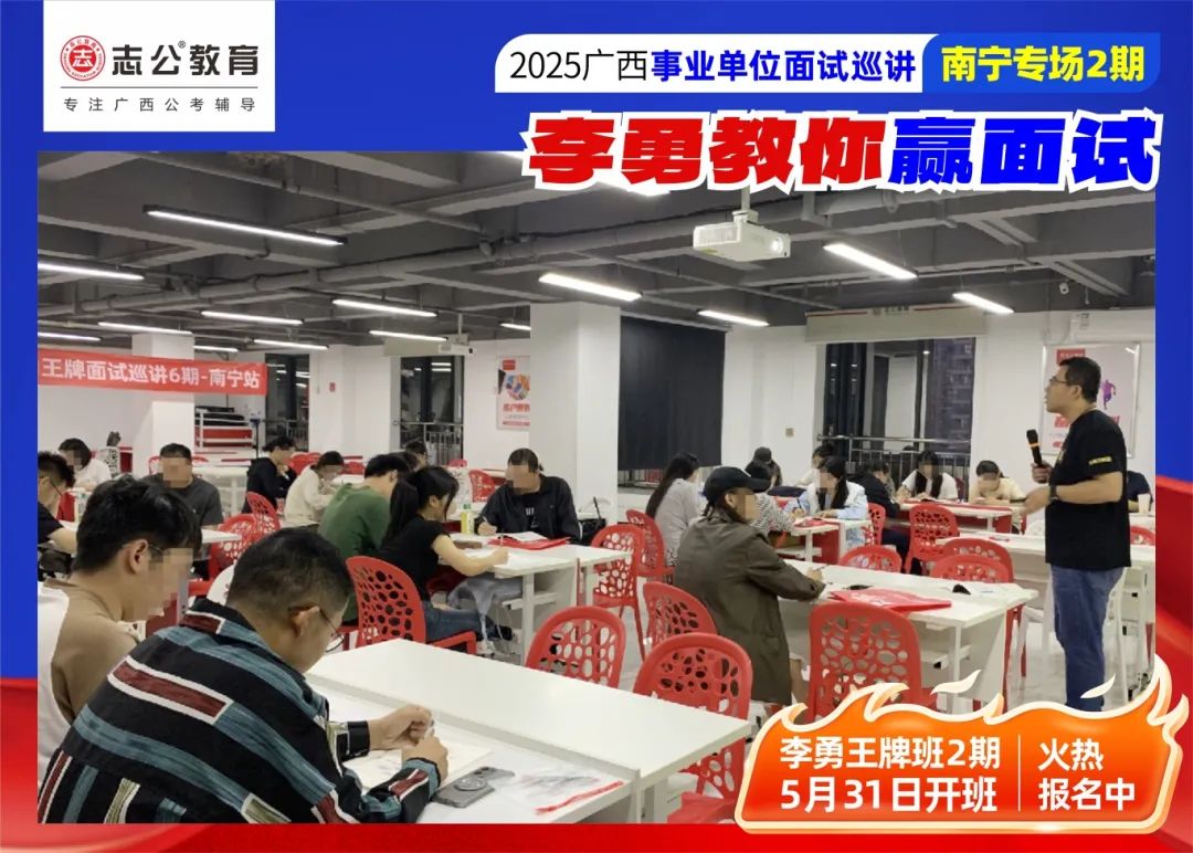 隨著2025廣西事業(yè)單位——李勇教你贏面試【南寧專(zhuān)場(chǎng)2期】線下巡講落幕,這場(chǎng)"面試攻堅(jiān)戰(zhàn)",不僅點(diǎn)燃了備考熱情,更讓志公教育"幫助人才實(shí)現(xiàn)更高質(zhì)量的就業(yè)"的使命,在八桂大地結(jié)出更多碩果。