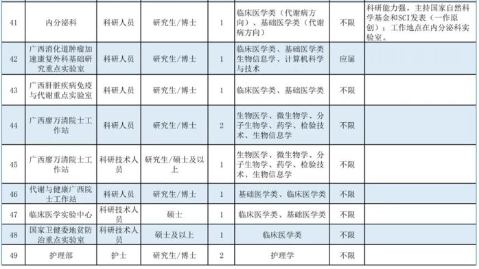 2.符合《廣西醫(yī)科大學第一附屬醫(yī)院高層次人才引進管理實施辦法》條件者,可按相關程序認定,并享受安家費、科研啟動基金等優(yōu)厚待遇(詳見附件1)。