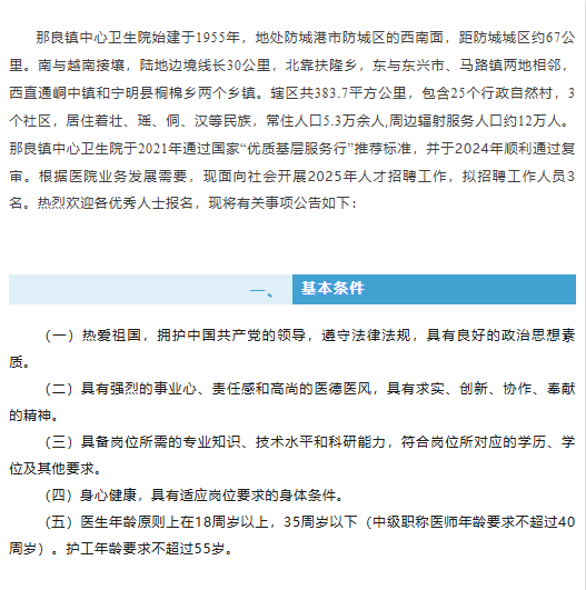 原文標(biāo)題:招醫(yī)生、護(hù)工啦!防城區(qū)那良鎮(zhèn)中心衛(wèi)生院“職”等你來(lái)