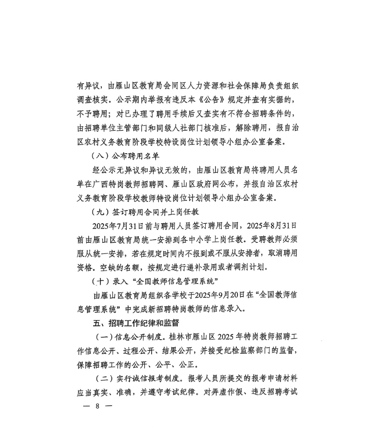 桂林市雁山區(qū)2025年特崗教師招聘公告