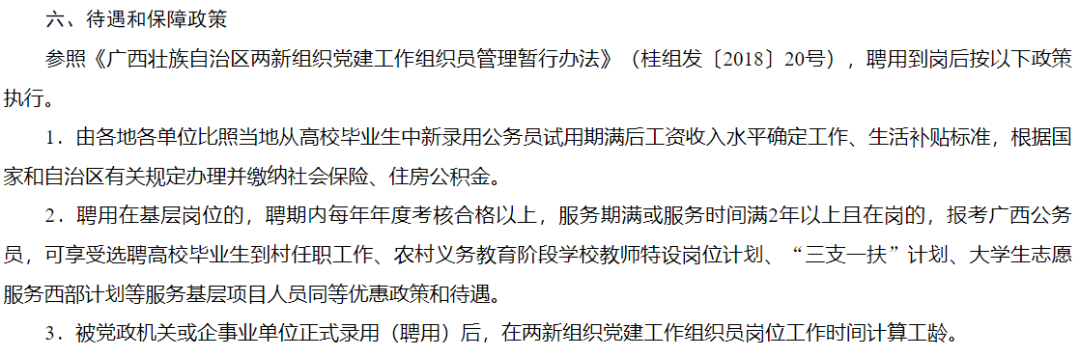 如果是符合條件的黨員朋友可要抓住這次機會了??,不僅“由各地各單位比照當地從高校畢業(yè)生中新錄用公務員試用期滿后工資收入水平確定工作、生活補貼標準,根據國家和自治區(qū)有關規(guī)定辦理并繳納社會保險、住房公積金。”服務期滿還參照三支一扶等服務基層項目人員同等優(yōu)惠政策和待遇,而且!這個考試只用筆試,不用面試,香,實在是太香了!