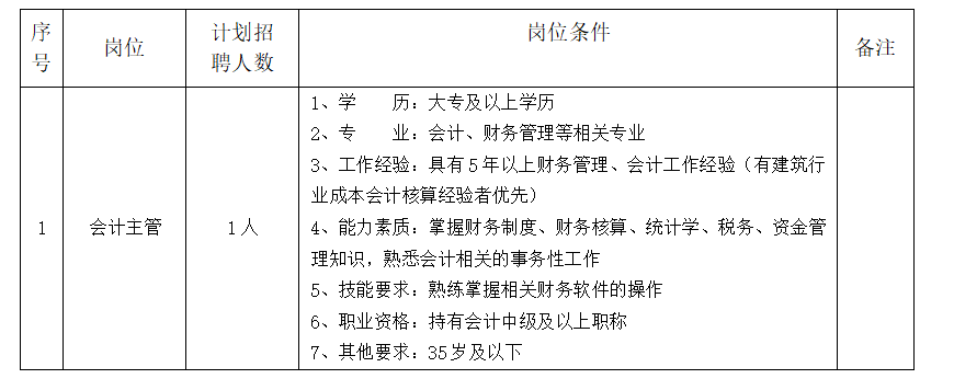 根據(jù)我公司業(yè)務(wù)發(fā)展需要,現(xiàn)面向社會公開招聘會計主管1名,相關(guān)事宜如下: