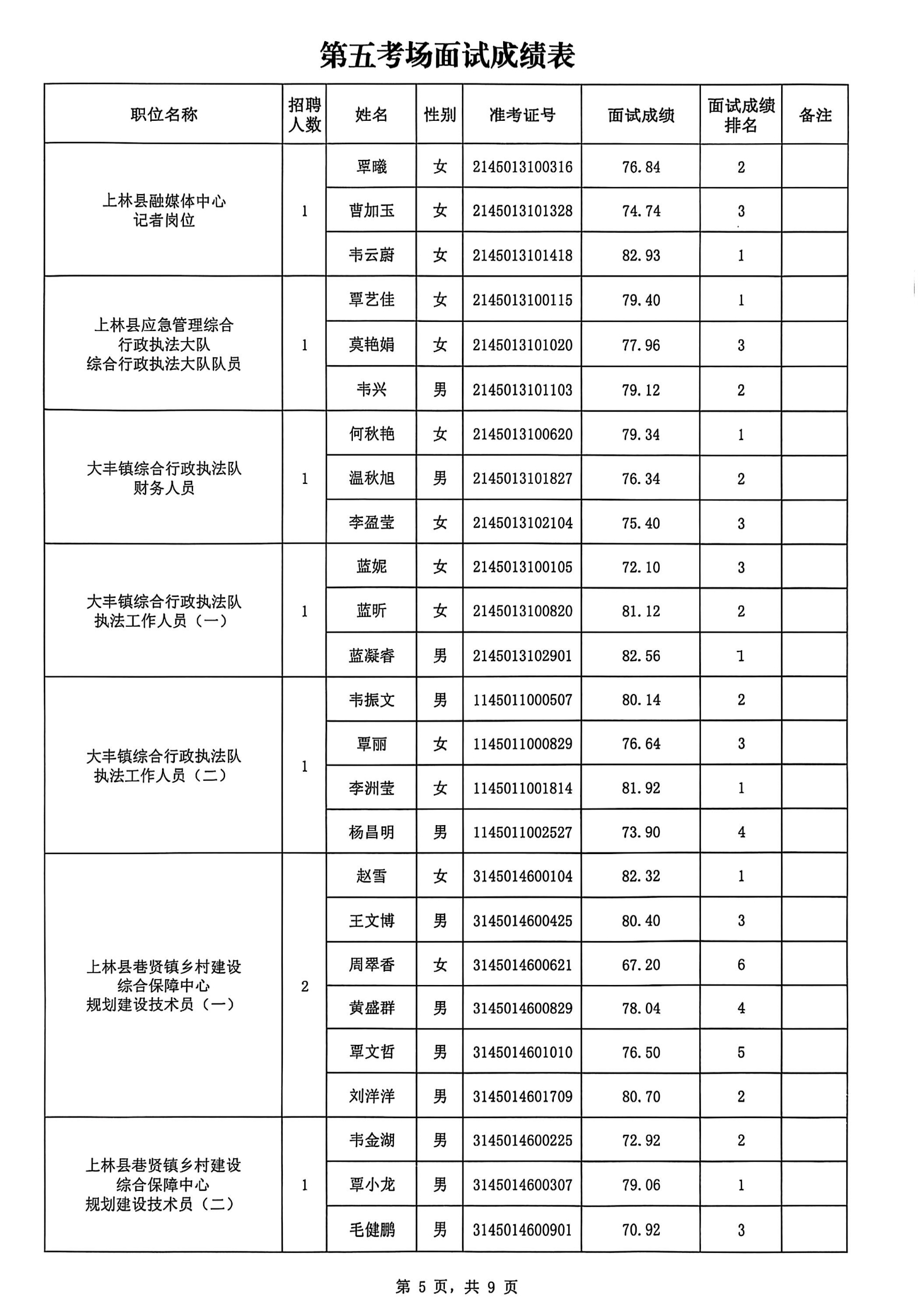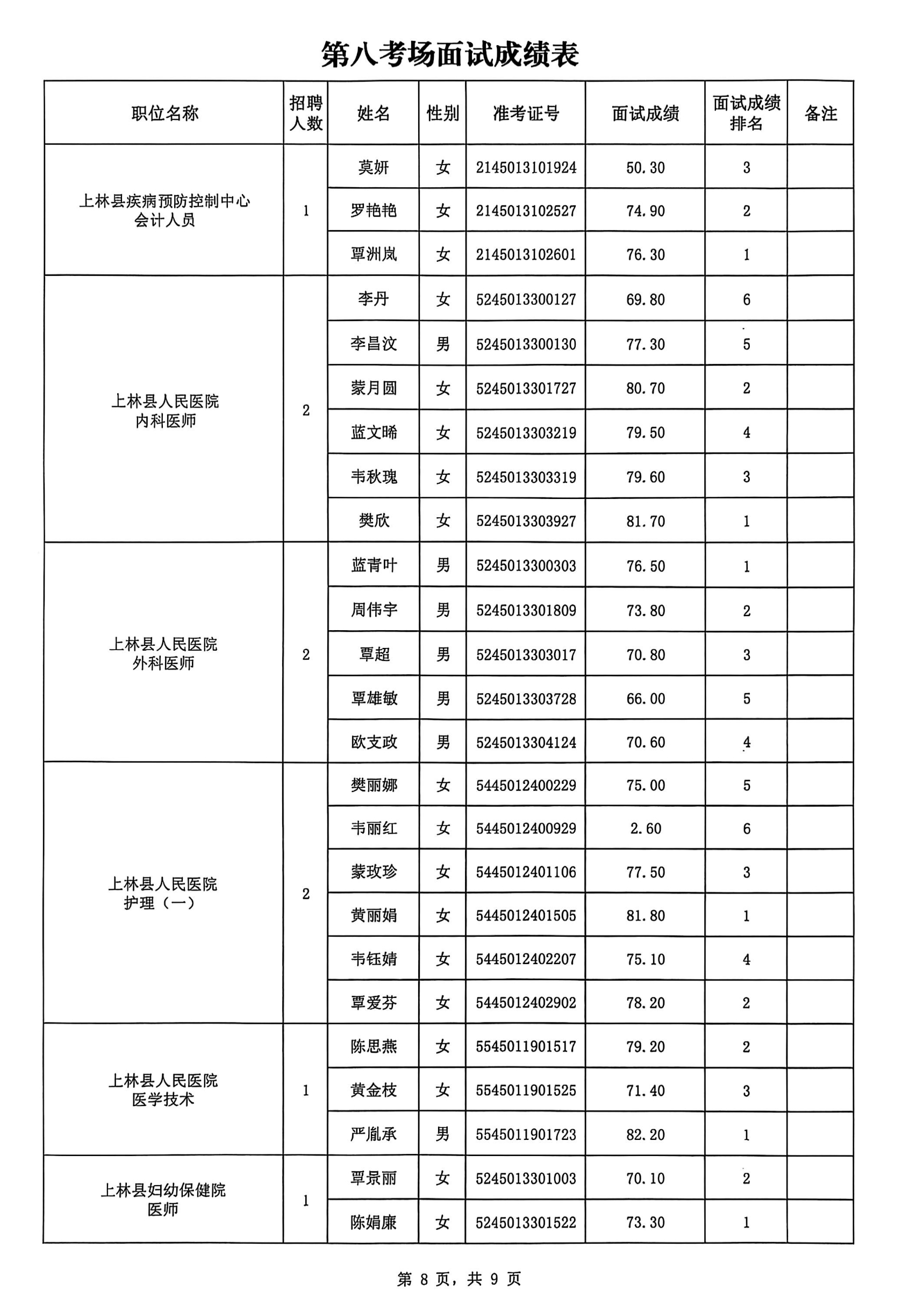 上林縣2025年公開(kāi)考試招聘事業(yè)單位工作人員面試成績(jī)公布如下: