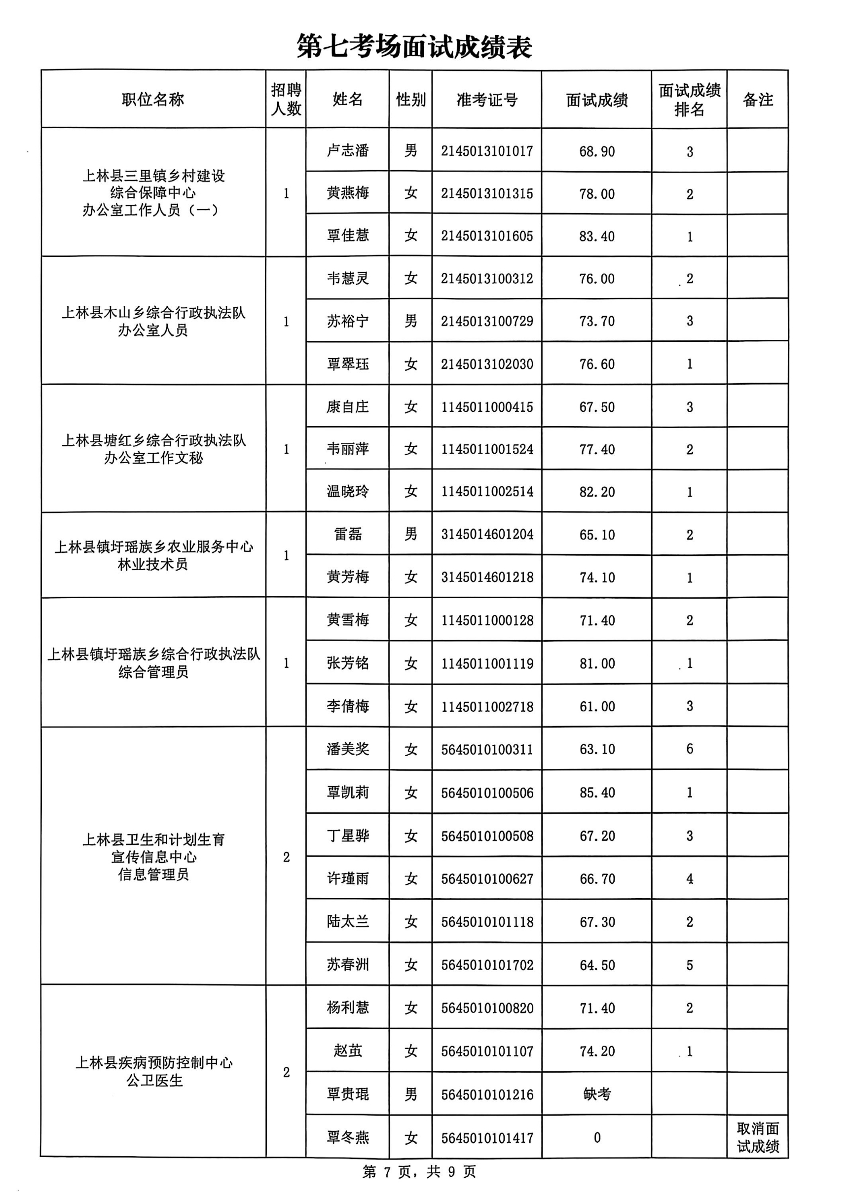 上林縣2025年公開(kāi)考試招聘事業(yè)單位工作人員面試成績(jī)