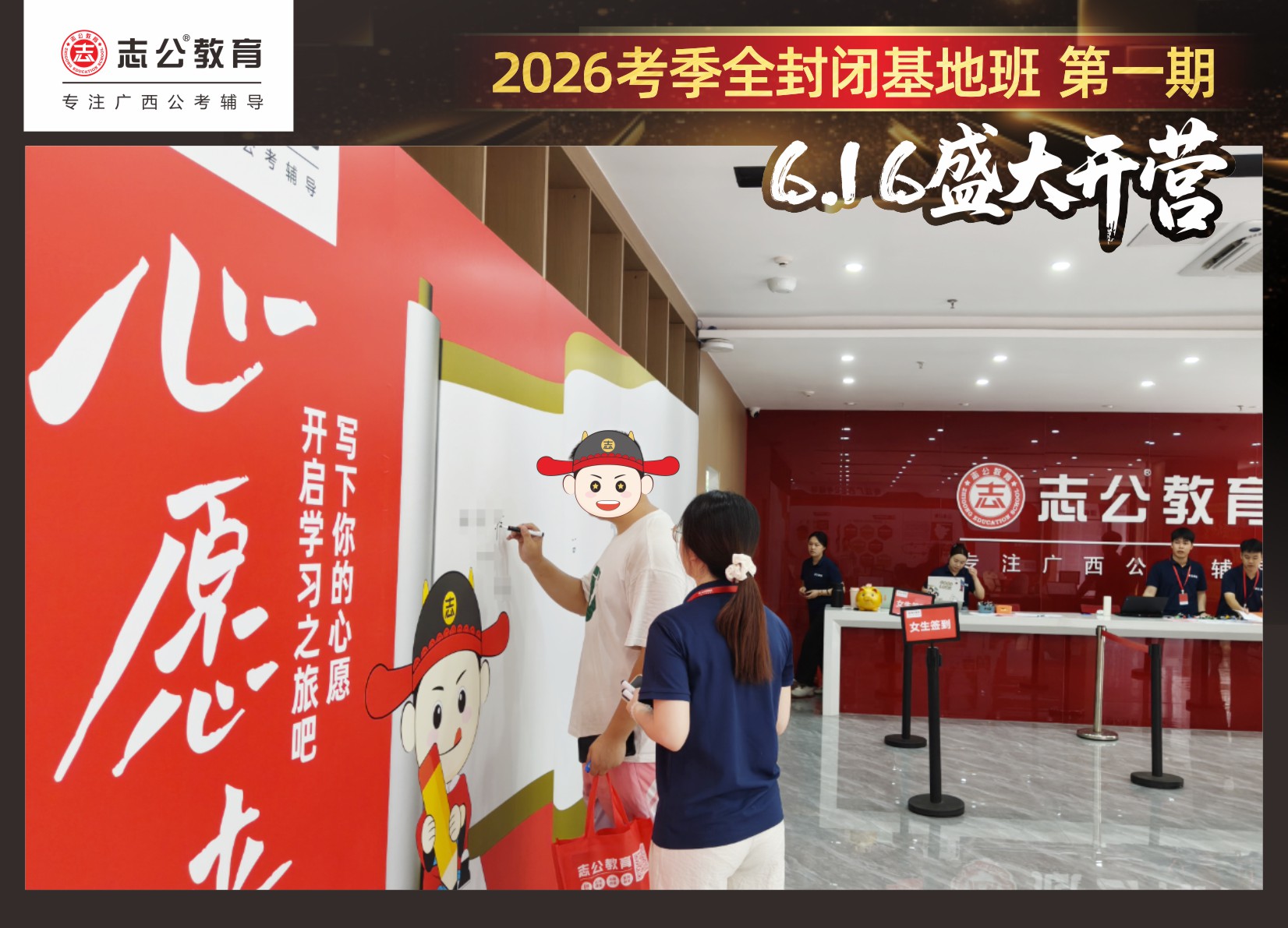 由于這段時間受臺風影響,南寧迎來下雨天,但學員們滿懷先一步備考,快一步成功圓夢的滿滿炙熱信心,早早就在志公教育(中關(guān)村)全封閉基地前臺等候,6月16日,志公教育26考季全封閉基地班第1期的學員們齊聚一堂,正式開啟他們的公考備戰(zhàn)之旅。簽到環(huán)節(jié)作為基地班課程的第一站,不僅是對學員們的歡迎儀式,更是他們邁向夢想的第一步。