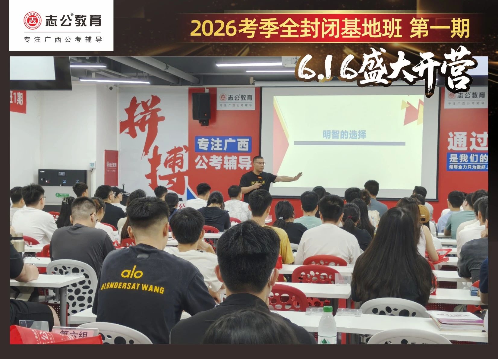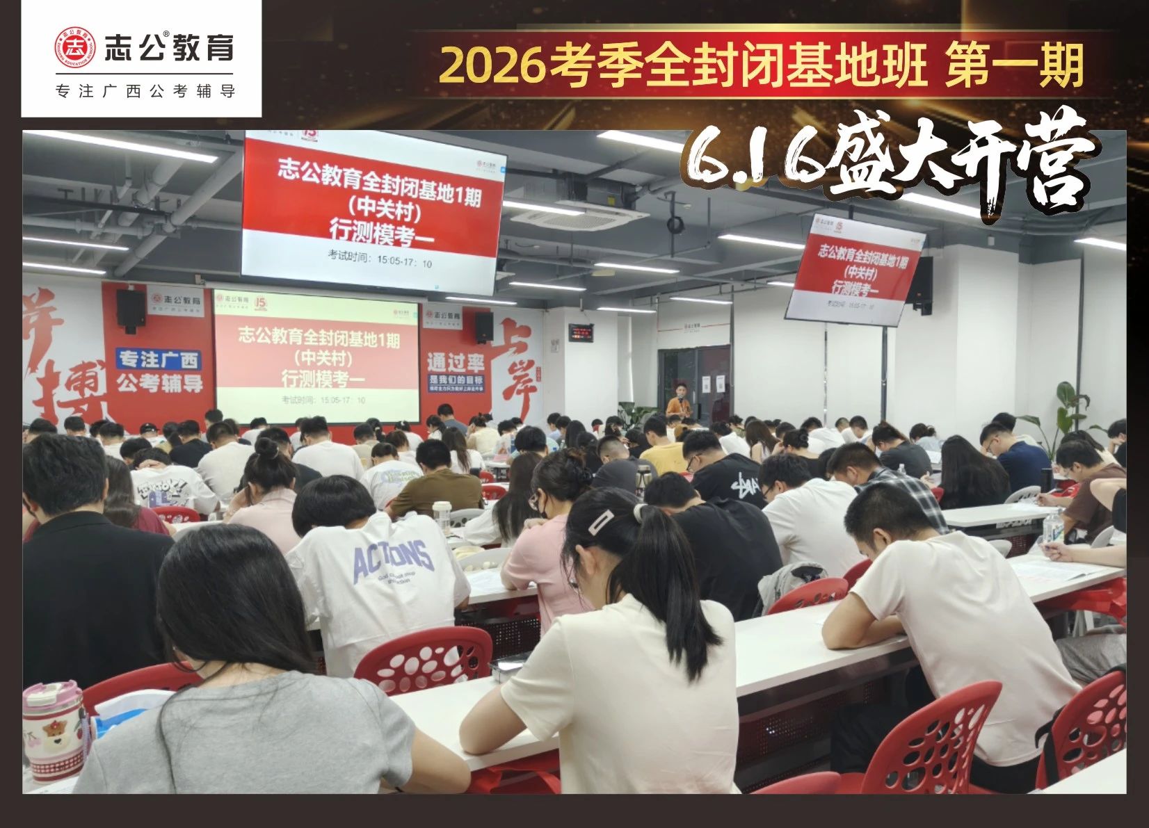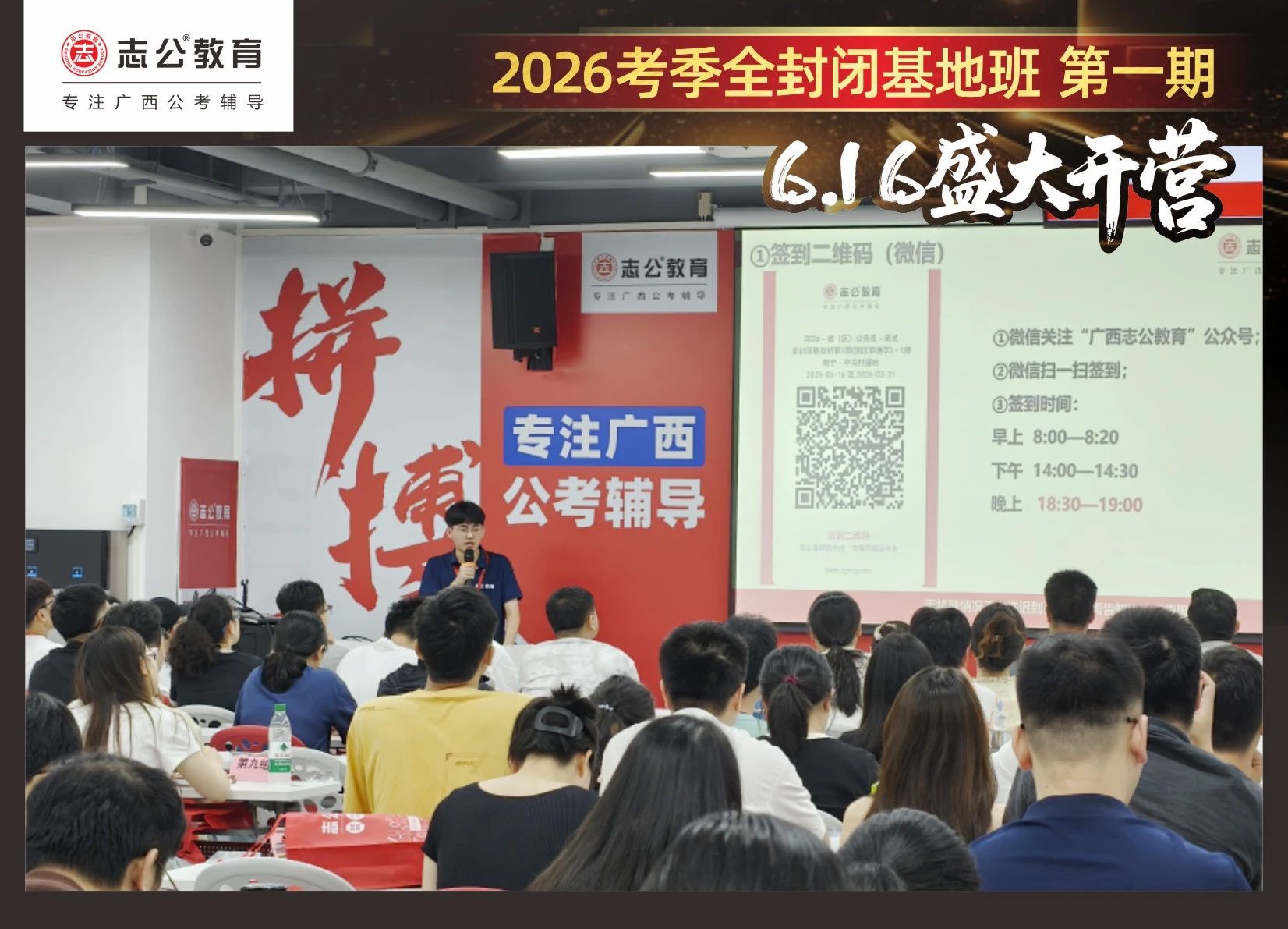 大家稍作休息之后,就是咱們期待已久的開班典禮啦!學員們在班主任的引導(dǎo)下分組就坐。大家目光灼灼,熱情高漲,迫不及待想要開啟學習模式。看這座無虛席的盛況,志公26考季全封閉基地班第1期課程實力名不虛傳,各位學員用飽滿的熱情和積極的態(tài)度迎接此次課程的開展,期待大家能夠完成自己的蛻變和成長!