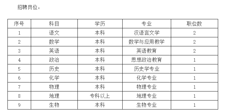 招聘條件:遵守國家法律、法規(guī),師德良好,服從管理,服從安排,教風(fēng)嚴(yán)謹(jǐn),為人正直,事業(yè)心和責(zé)任心強(qiáng),本科及以上學(xué)歷,普通話流暢、準(zhǔn)確,富有愛心,有志從事教育事業(yè),有一定的管理和人際協(xié)調(diào)能力,學(xué)業(yè)成績優(yōu)秀的應(yīng)、歷屆師范院?;蛲葘W(xué)歷的其他院校畢業(yè)生,有多年從教經(jīng)驗(yàn)的教師可適當(dāng)放寬年齡優(yōu)先聘用。