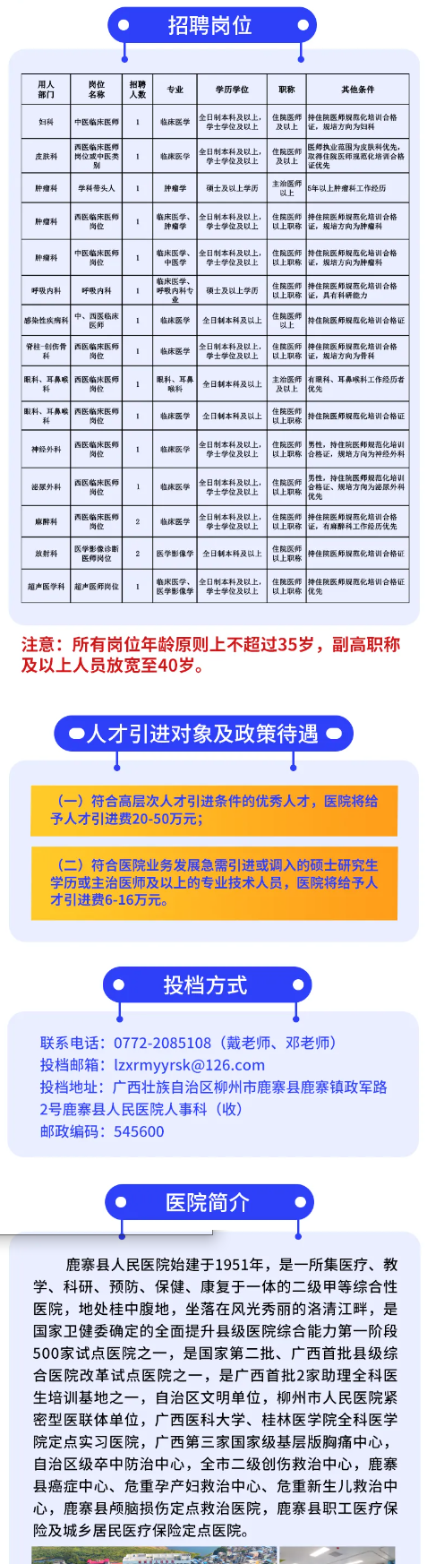 原文標(biāo)題:誠聘英才——鹿寨縣人民醫(yī)院2025年度人才招聘!