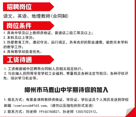 2025年柳州市馬鹿山中學(xué)招聘語(yǔ)文、英語(yǔ)、地理教師