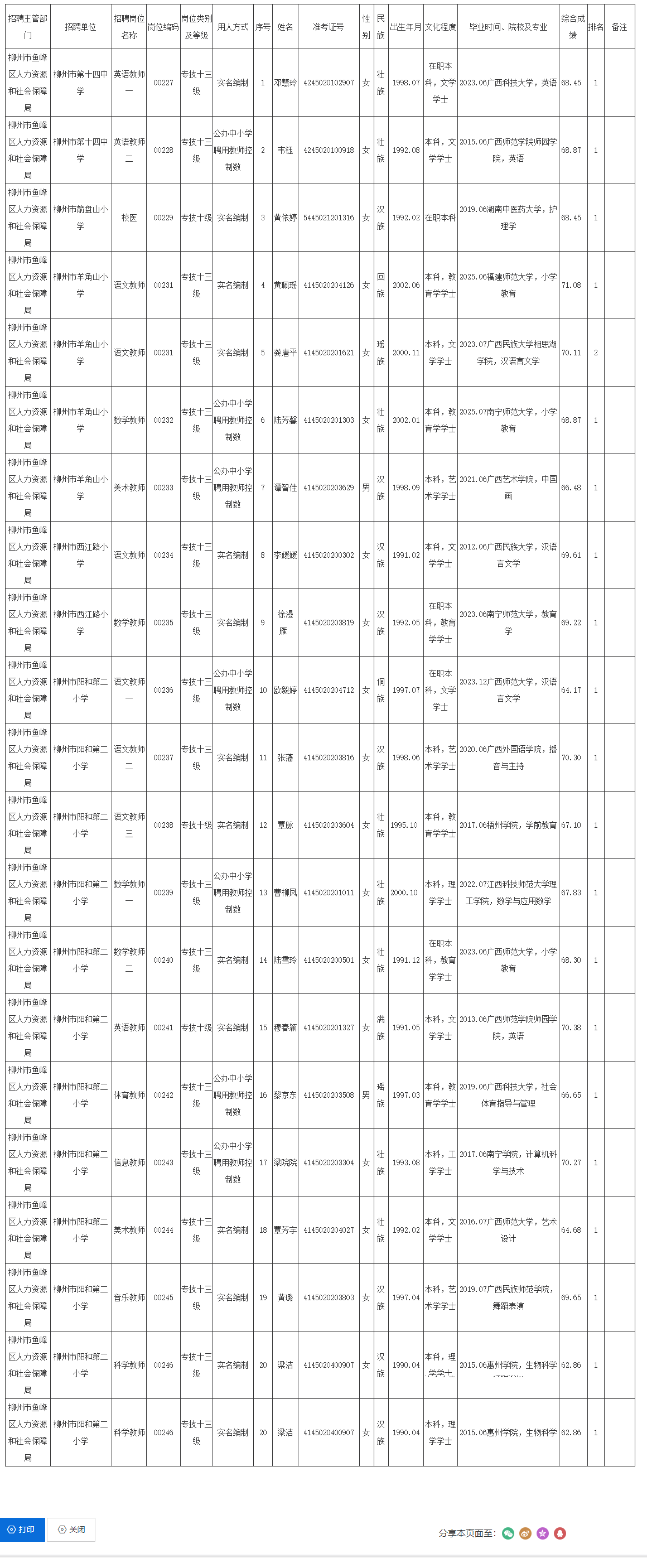 2025年柳州市魚峰區(qū)中小學(xué)校公開招聘工作人員擬聘用人選公示(第二批)