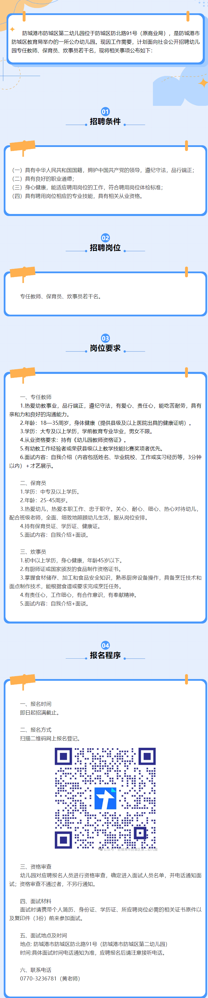 原文標(biāo)題:防城區(qū)第二幼兒園2025年秋季學(xué)期教職工招聘公告