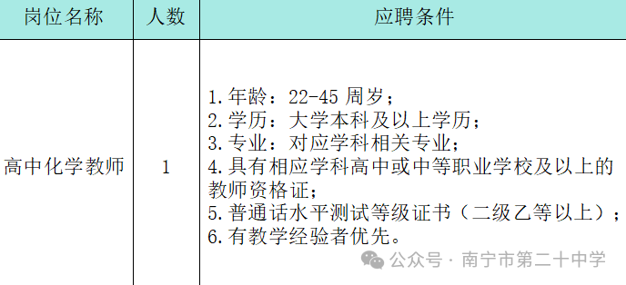原文標題:南寧市第二十中學(xué)教師招聘啟事