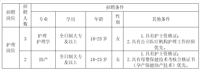本次公開(kāi)招聘護(hù)理崗位工作人員5名,具體招聘崗位、人數(shù)、資格條件如下: