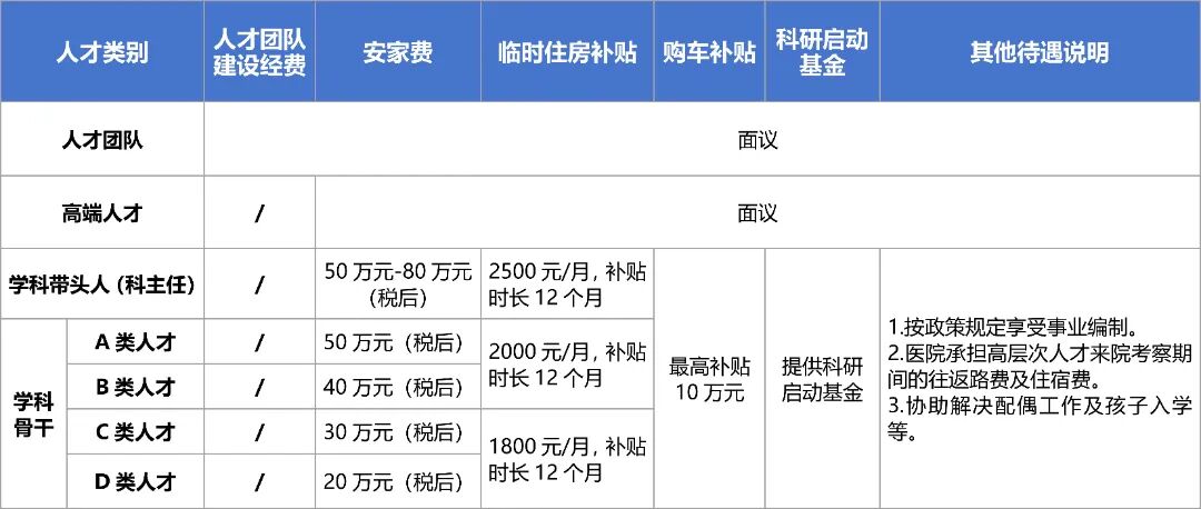 聘用為急需緊缺專業(yè)崗位醫(yī)師(緊缺專業(yè)包括:重癥醫(yī)學科、麻醉科、感染性疾病科、兒科、急診醫(yī)學科、病理科、精神科、產科、神經(jīng)外科、超聲科)的碩士研究生或符合“雙一流”建設高校及“雙一流”建設學科碩士研究生,給予5-10萬安家費。
