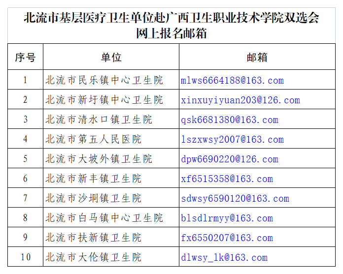 4.北流市基層醫(yī)療衛(wèi)生單位赴廣西衛(wèi)生職業(yè)技術(shù)學(xué)院雙選會(huì)網(wǎng)上報(bào)名郵箱