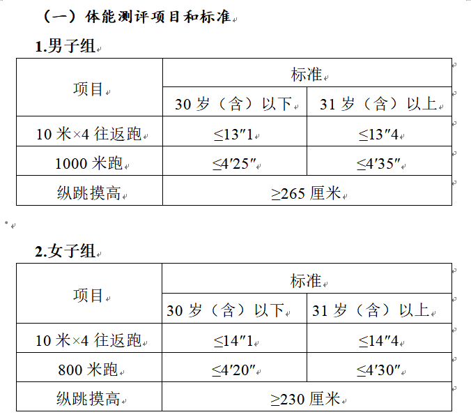 測評結(jié)果分為合格和不合格。一般體能測評三項成績均達標的方為合格,其中具有研究生及以上學歷報考人員,體能測評三個項目中有任兩項達標的,即視為合格。