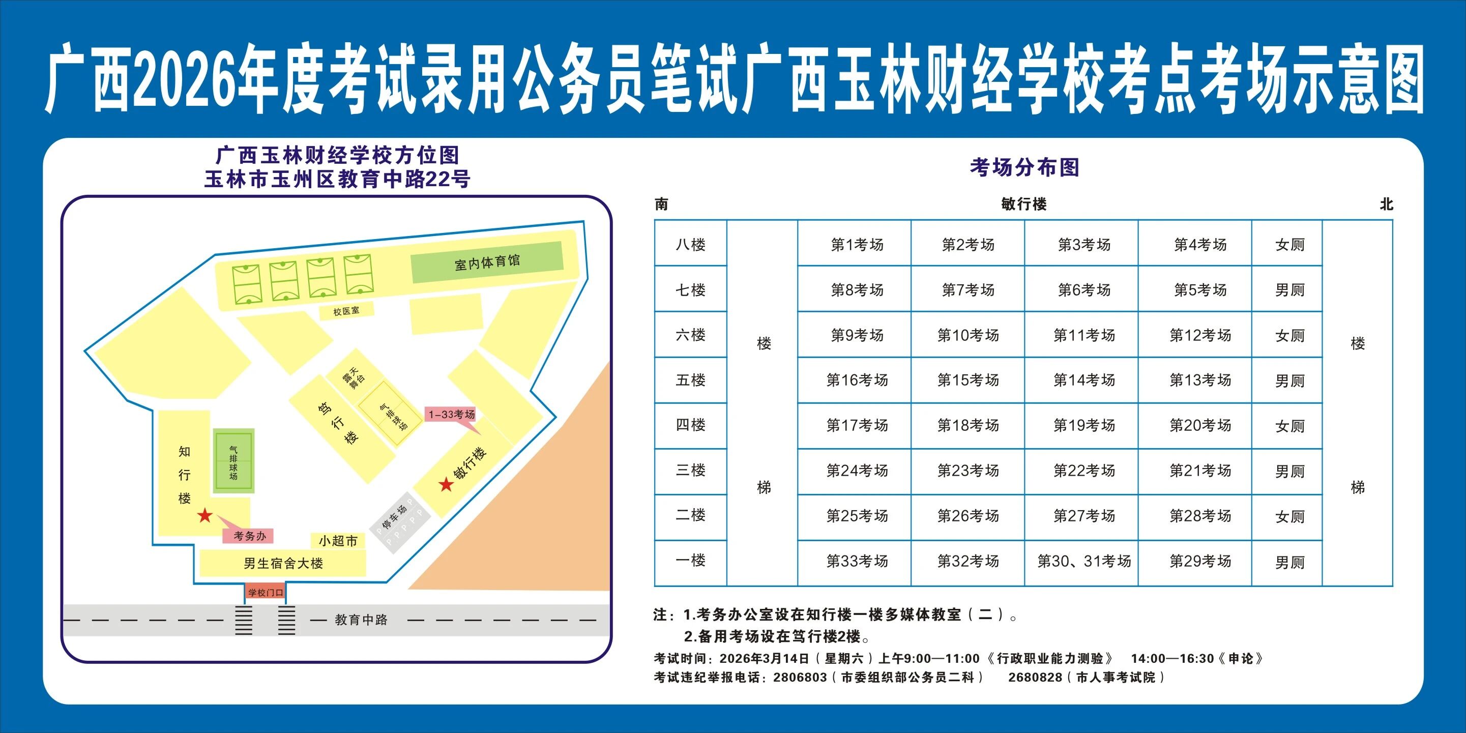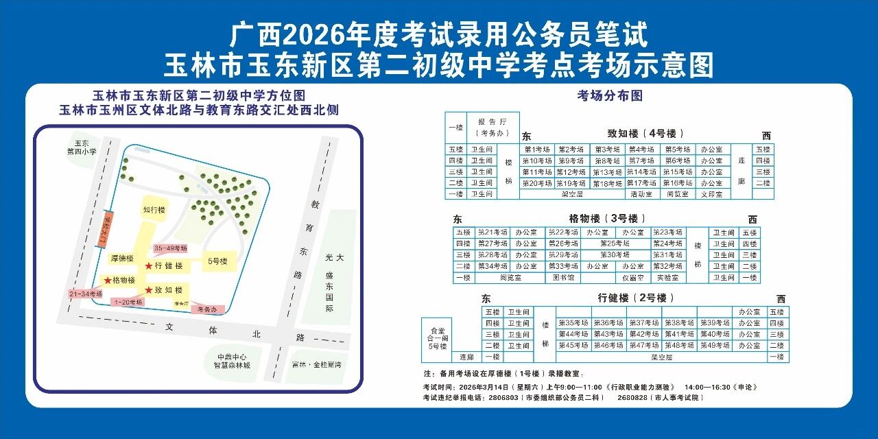 除考試當(dāng)天考生可以進(jìn)入考點(diǎn)外,考生不得提前進(jìn)入考點(diǎn)查看考場(學(xué)校將在大門處擺放考場分布示意圖),玉林考區(qū)10個(gè)考點(diǎn)的考場布置情況如下: