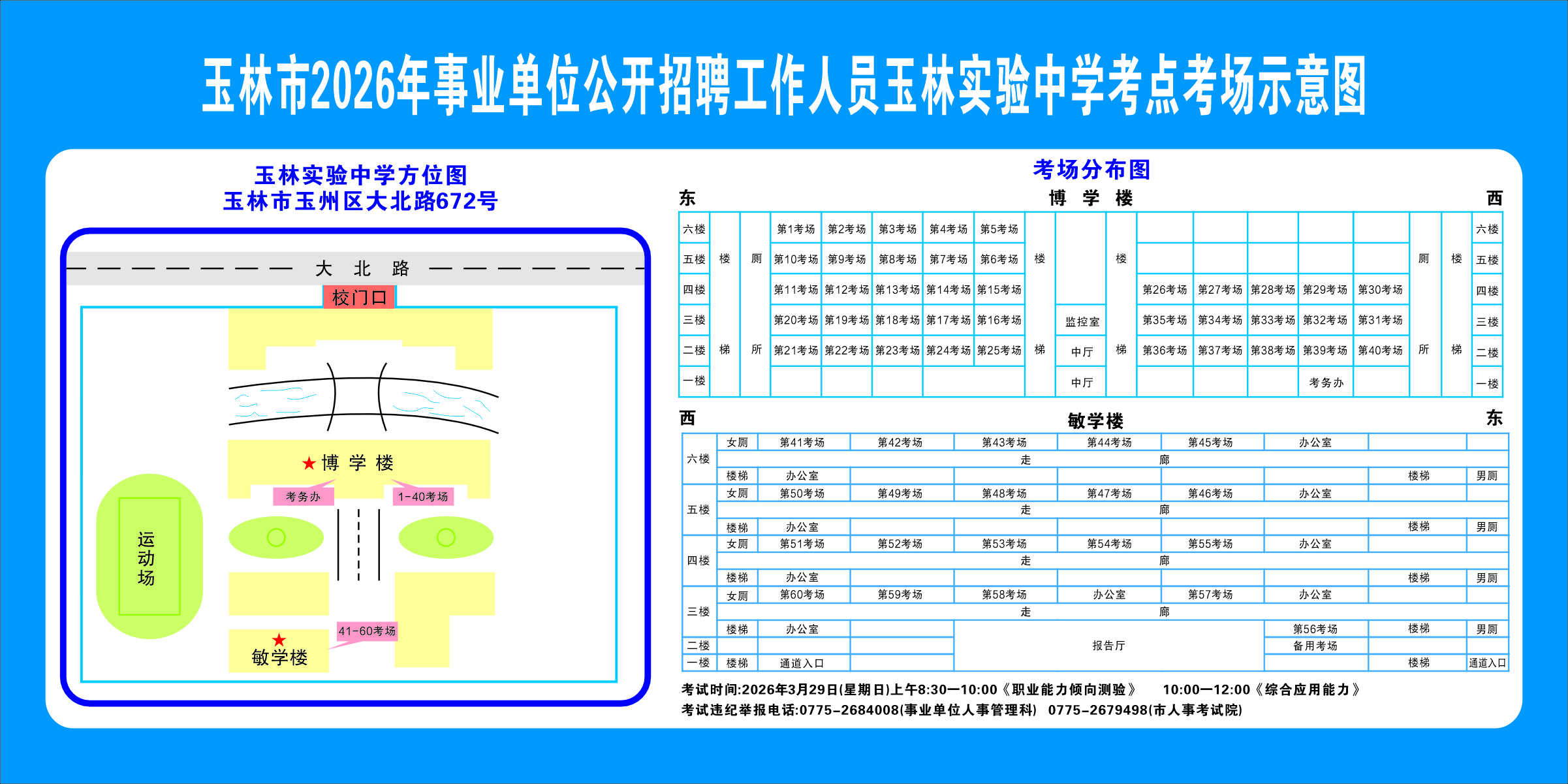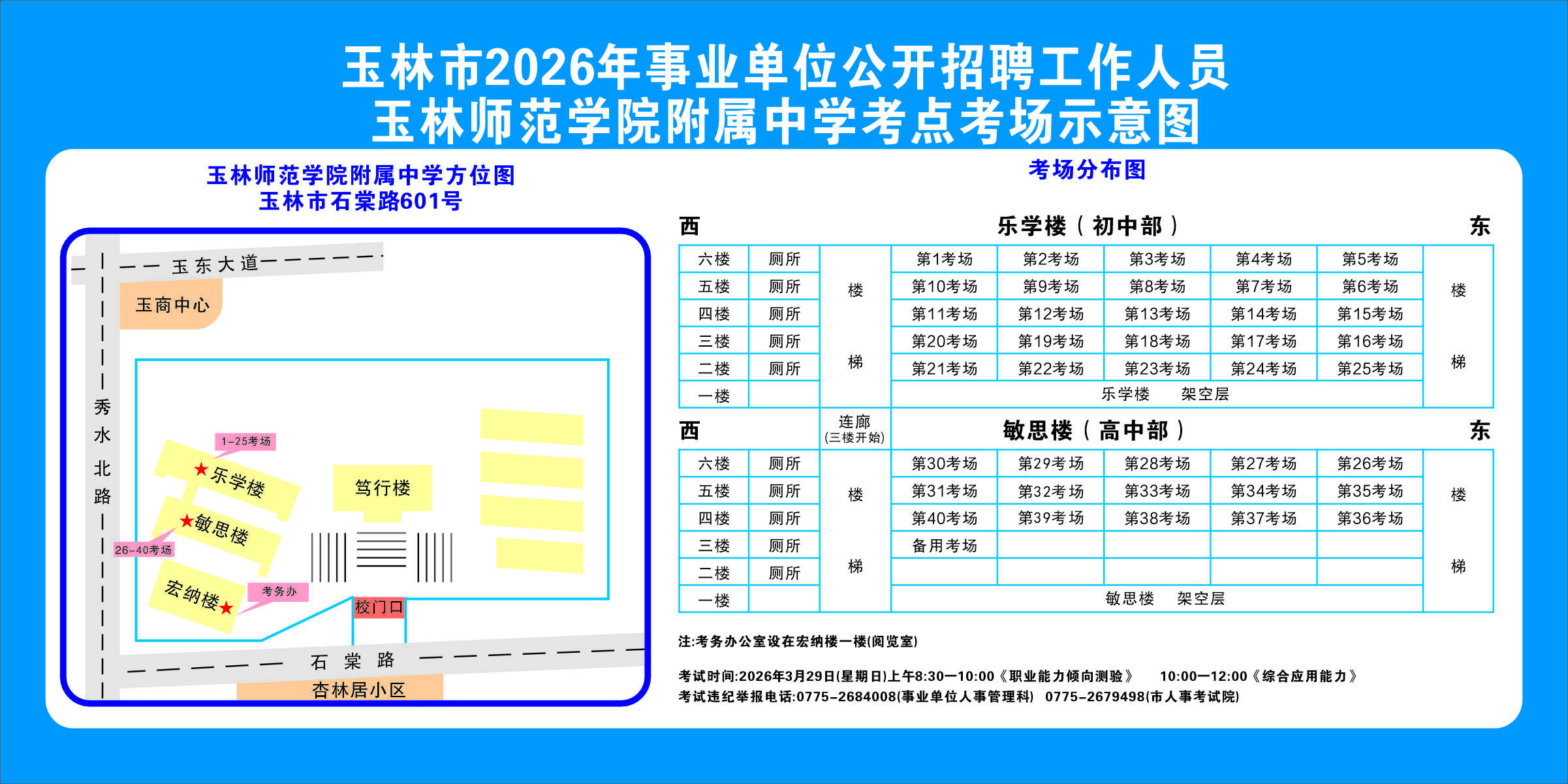 請(qǐng)考生注意查看“考點(diǎn)考場(chǎng)示意圖”,提前熟悉考點(diǎn)地址、交通路線和考場(chǎng)分布情況。除考試當(dāng)天考生可以進(jìn)入考點(diǎn)外,考生不得提前進(jìn)入考點(diǎn)查看考場(chǎng)(學(xué)校將在大門處擺放考點(diǎn)考場(chǎng)示意圖),17個(gè)考點(diǎn)的考場(chǎng)布置情況如下: